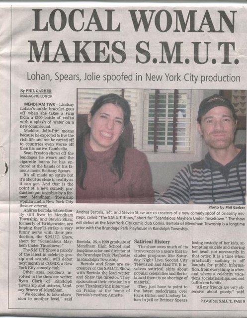 FRONT PAGE BABY! “Local Woman Makes SMUT”? Daddy must be proud. Local New Jersey newspapers… We’re in the big time now! Eyeroll.