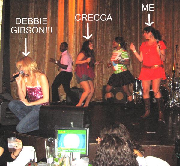 I thought this picture was “blog worthy”. YES. It is true. Me and Crecca were on stage singing karaoke with DEBBIE GIBSON! ::Backflips::