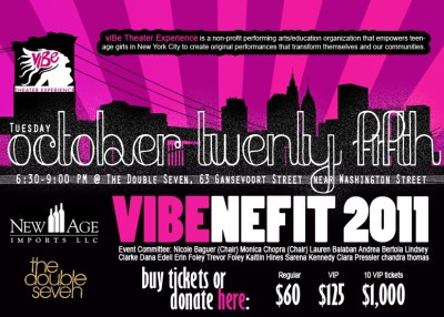 viBenefit 2010 raised over $11,000 and 100% of the proceeds donated went to viBe Theater Experience. viBenefit garnered media coverage on outlets such as the Early Show on CBS, Thrillist and Going.com.